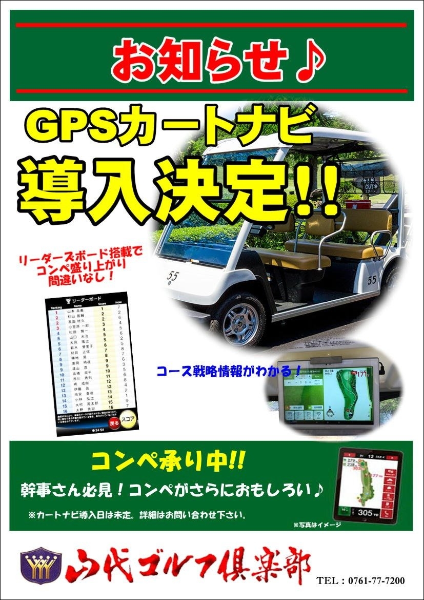 最新GPSナビ導入開始! | お知らせ | 山代ゴルフ倶楽部